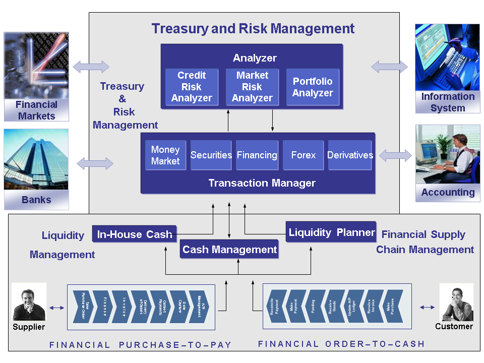 SAP Treasury and Risk Management is a series of solutions that are geared towards analyzing and optimizing business processes in the finance area of a company.